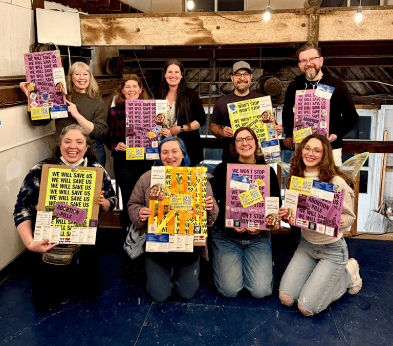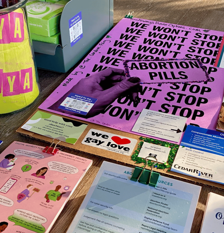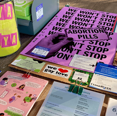 Provided pro-abortion pins, stickers, zines, and educational materials
