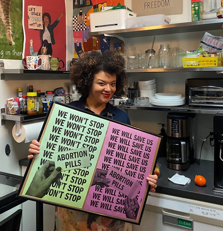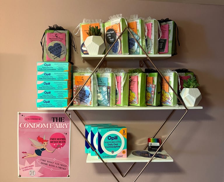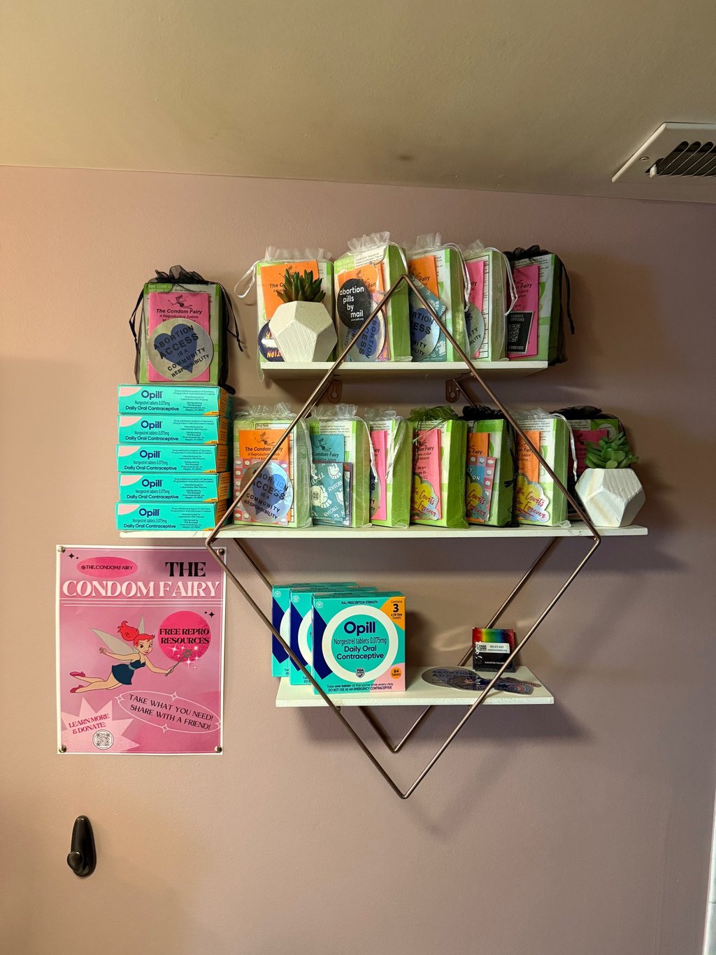 Our community partners — small, trusted, women-, queer-, and BIPOC-owned coffee shops, salons, and other welcoming spaces — host resource stations, typically in private bathrooms, stocked with FREE supplies and educational materials.
